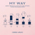 My Way'in eşsiz dünyasını keşfedin. My Way, ufkunuzu genişletmeniz ve dünya çapında yeni deneyimler yaşamanız için bir davetiyedir. Baş döndüren beyaz çiçeklerden oluşan bir buket, dünya metaforu olarak yaratılmış tılsımlı bir şişede saklanmaktadır. My Way, ufkunuzu genişletmeniz için, sizi dünyanın herhangi bir yerinde denk gelebileceğiniz anlamlı deneyimlere çağıran bir kokudur. Açık fikirli, meraklı, doğayı hisseden ve hem kendini hem de dünyayı keşfetmeye hazır olan kadınların kokusudur. Mavi kapak, bir dünya metaforudur. Kapağın çevresindeki altın yüzük, kazanılan her deneyim tarafından aydınlatılan eşsiz bir serüvenin sembolüdür. Giorgio Armani imzasıyla damgalanmış altın yüzükle çevrili olan kapak, yaşanması gereken zarafet dolu dünyayı yansıtır. Bu eşsiz parfüm sürdürülebilirlik ilkesi ile uyumlu olacak şekilde yeniden doldurulabilir formatta üretilmiştir.